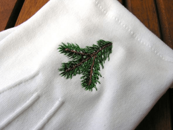 Myslivecké rukavice s vyšitým smrkovým jehličím - bavlněné 2