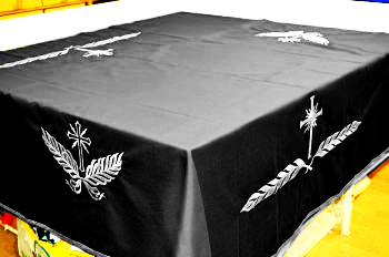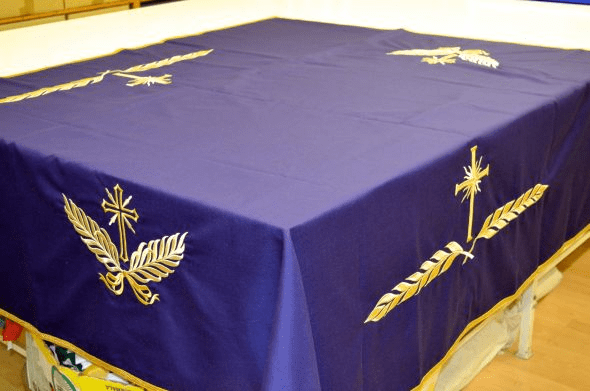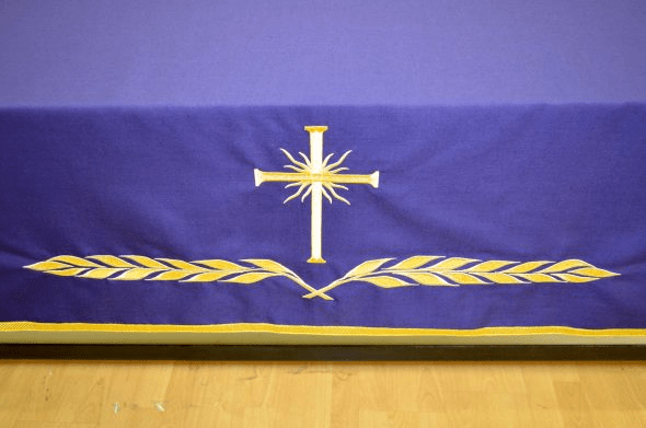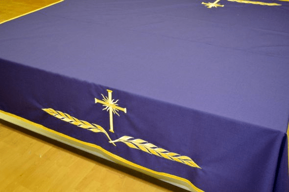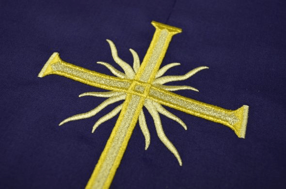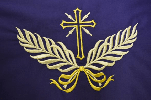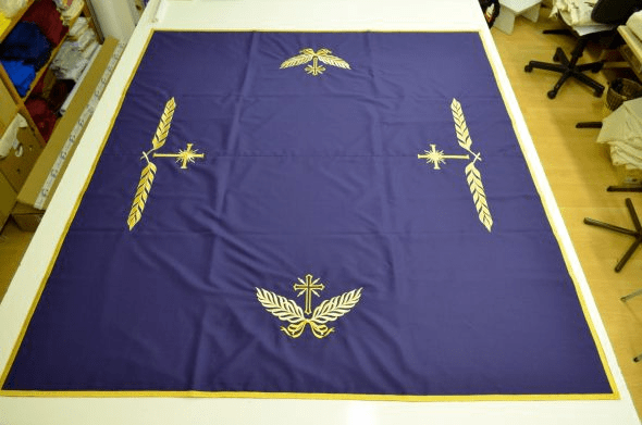 Na přání zákazníka lze zhotovit variantu černé podkladové látky se stříbrnou výšivkou nebo fialové podkladové látky se zlatou výšivkou.