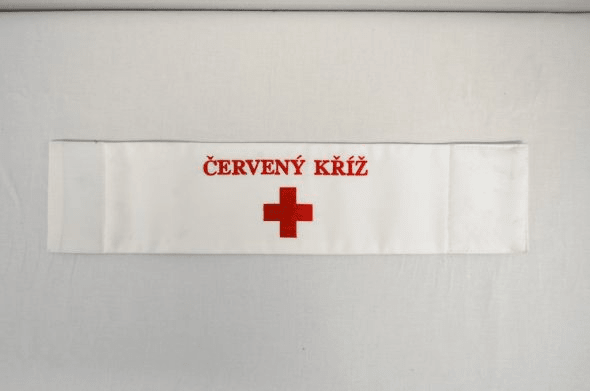 Rukávová páska je na suchý zip. Je velmi kvalitně ušitá z kepru. Vyšitý text na rukávové pásce je červený kříž.