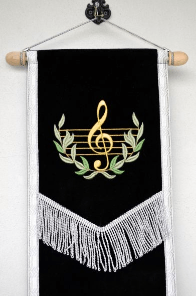 Smuteční stuha vyšívaná s překlopem a houslovým klíčem