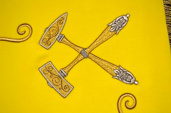 Vytvořili jsme jedinečný návrh na slavnostní podnikový prapor pro rodinnou Vápenku Vitoul s.r.o. Vyšívaný podnikový prapor byl umělecky vyšit do sametu hedvábnými a zlatými nitěmi. Naše nejzkušenější vyšívačky, přípravářky a švadlenky postupovaly přesně dle návrhu, který vytvořil Zdeněk Velebný. Rodina Vitoulových si osobně v hornických uniformách přijela převzít podnikový prapor k nám do Ústí nad Orlicí. Slavnostní žehnání podnikového praporu proběhne v Mladeči dne 9.9.2014 v 16:00 v kostele sv. Martina. Slavnostní mši svatou povede a osobně požehná Jeho Excelence Arcibiskup, otec Jan Graubner.