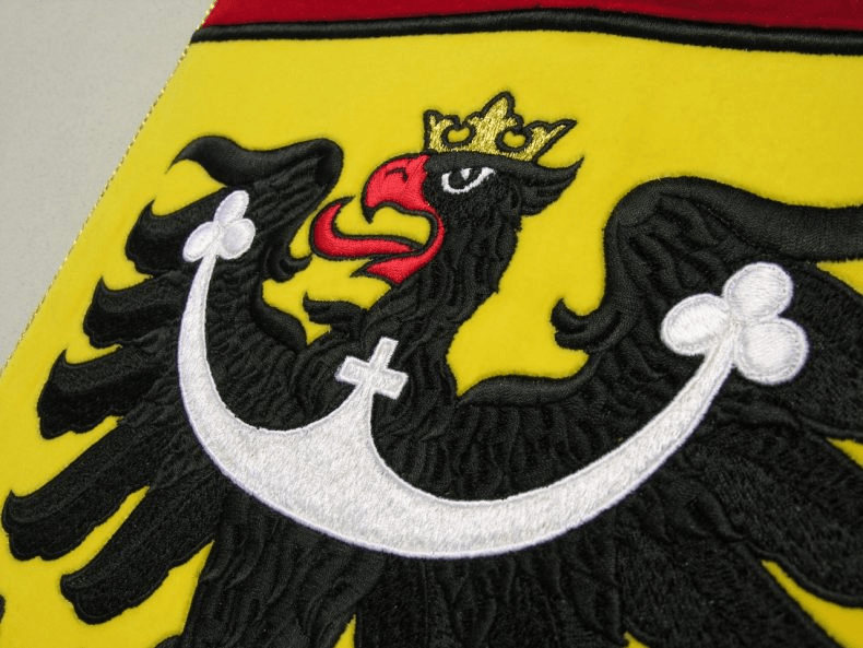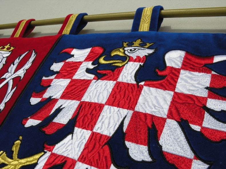 Slavnostní interiérové provedení státního znaku České republiky ze sametu. Umístění státního znaku je především určeno do reprezentativních prostorů úřadů, škol, ale i zasedacích, jednacích místností firem. Preciznost a řemeslnost provedení nástěnného státního znaku ČR upoutá v každém detailu.