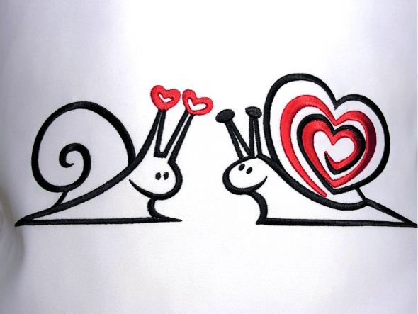 Vyšívaný saténový polštářek k Valentýnu - motiv zamilovaní šneci
